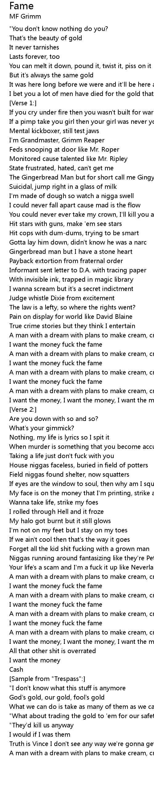I want the money fuck the fame |
