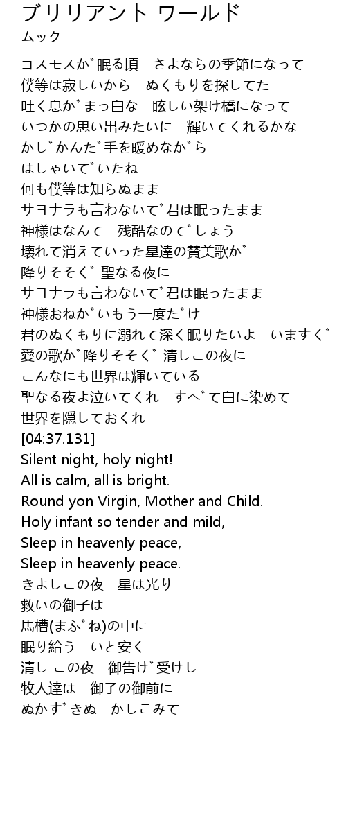 | [03:47.520] | 聖なる夜よ泣いてくれ すべて白に染めて |
