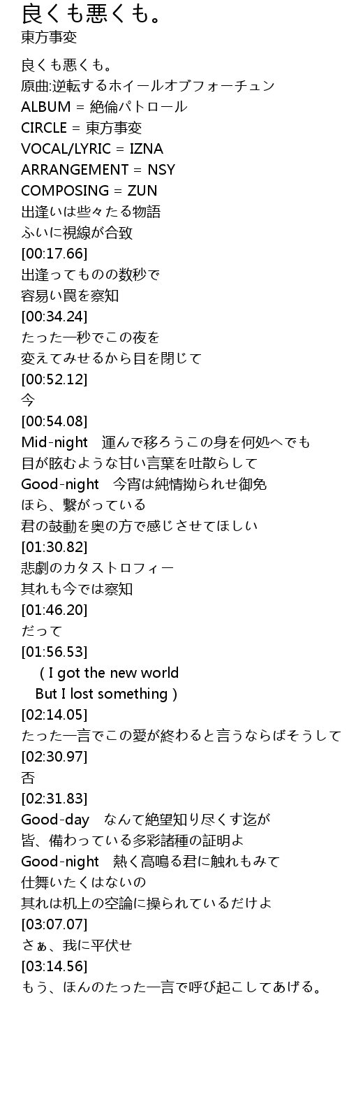 | [00:02.46] | 原曲:逆転するホイールオブフォーチュン |