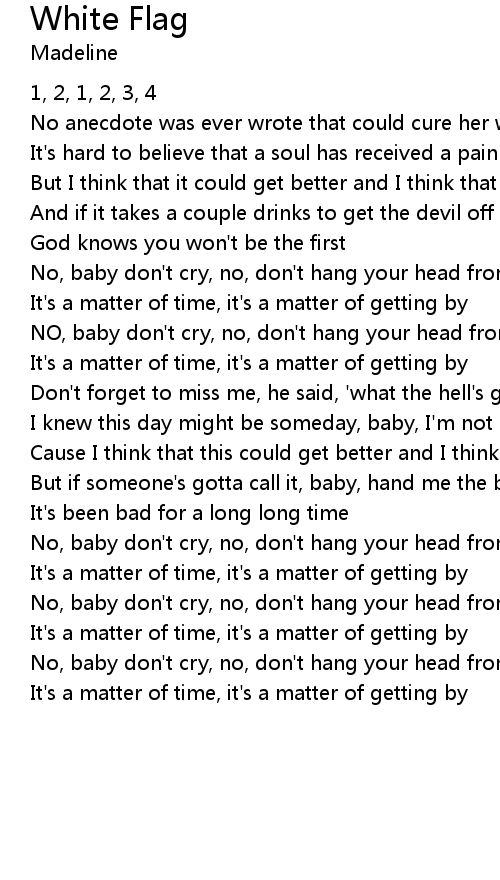 I knew this day might be someday, baby, I'm not ready put your white flag down |