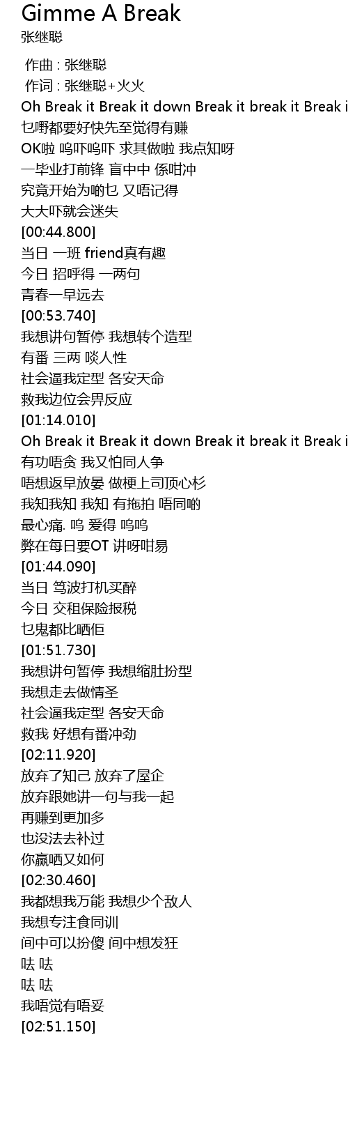 | [00:00.00] | 作曲 : 张继聪 |
