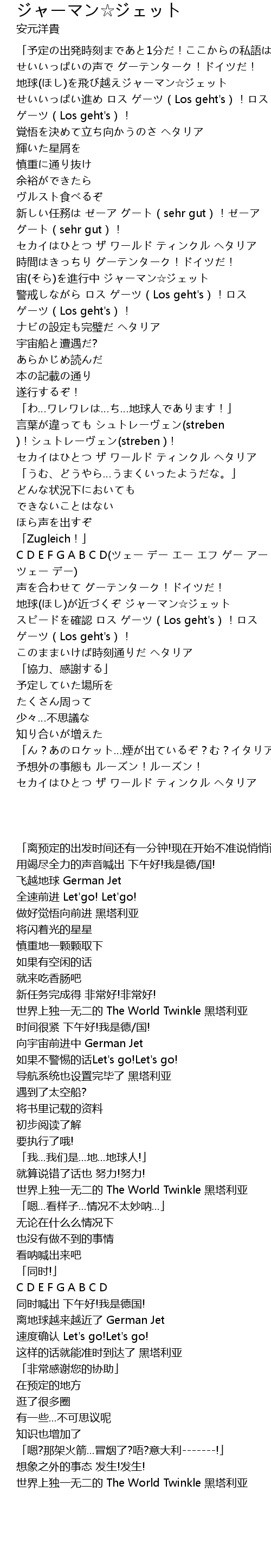 | [00:13:00] | 地球(ほし)を飛び越えジャーマン☆ジェット |
