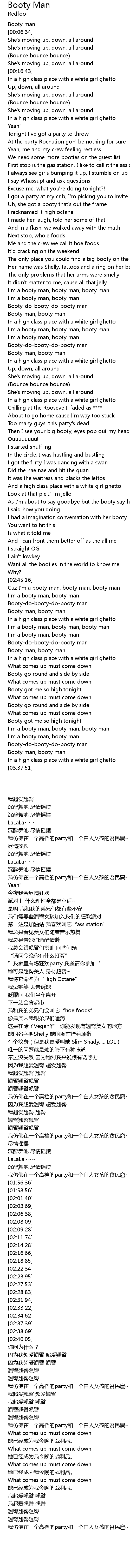 | [01:35.97] | I'm a booty man, booty man, booty man |