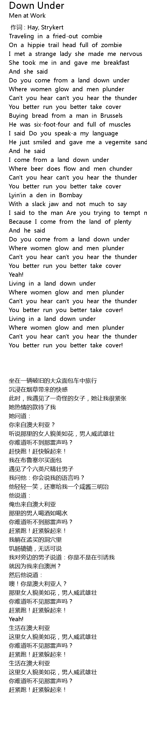 | 歌曲 | Down Under |