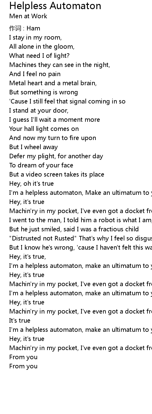 | I'm a helpless automaton, Make an ultimatum to you | |