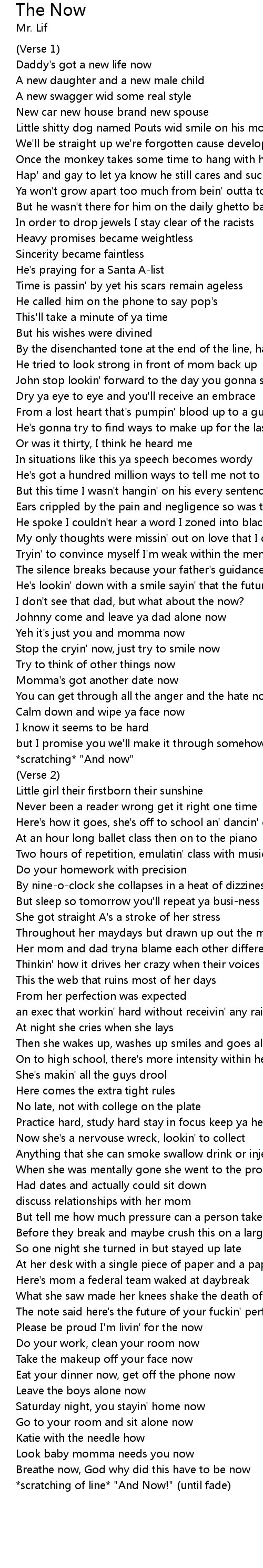 | Her mom and dad tryna blame each other different ways she stop and gaze | |