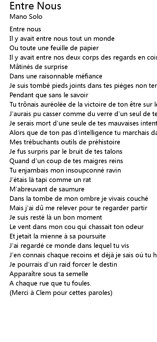 | Merci à Clem pour cettes paroles |