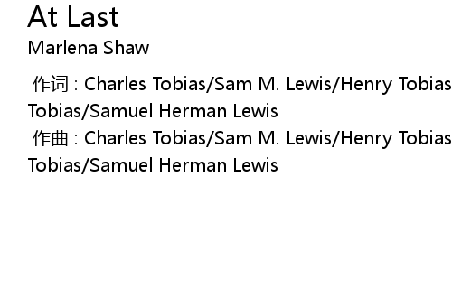 | [00:00.000] | zuo ci : Charles Tobias Sam M. Lewis Henry Tobias Henry H. Tobias Samuel Herman Lewis |