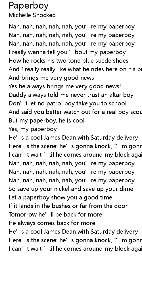 | I really wanna tell you ' bout my paperboy | |