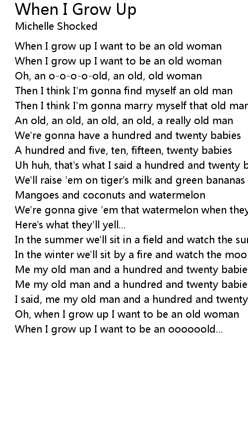 Oh, when I grow up I want to be an old woman |