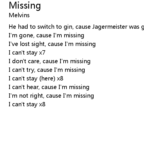 | I'm gone, cause I'm missing | |