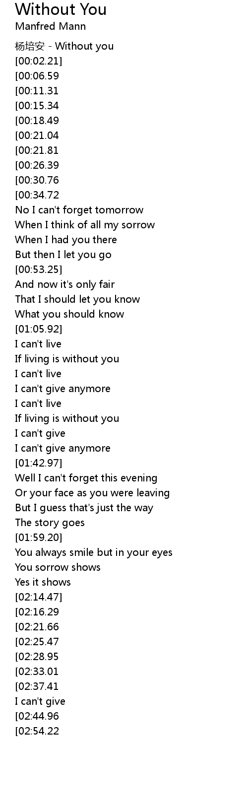 | [03:25.46][02:37.41] | If living is without you |
