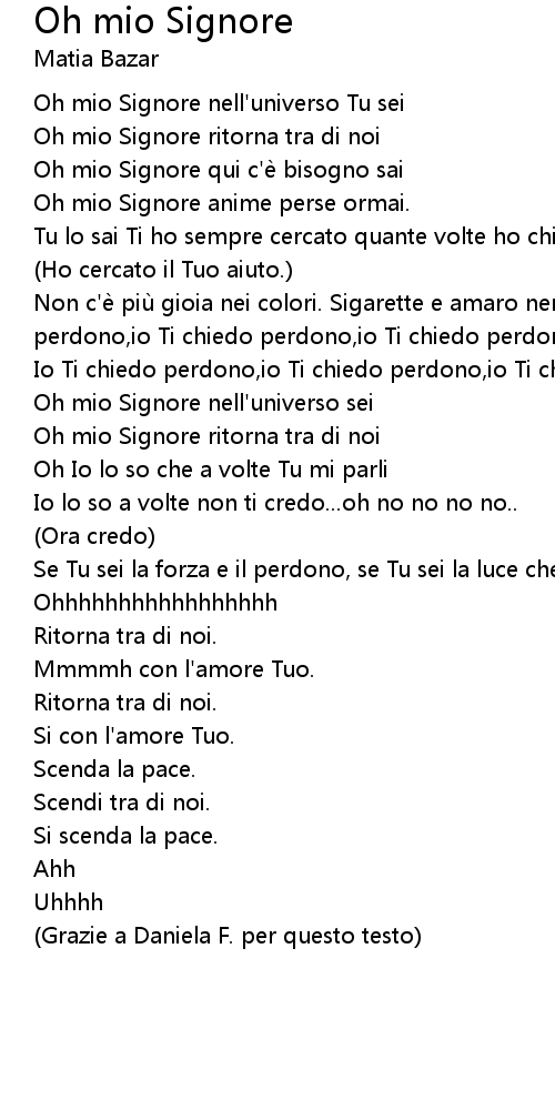 | Tu lo sai Ti ho sempre cercato quante volte ho chiesto il Tuo aiuto. | |