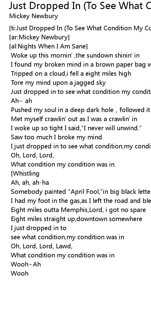 | 歌曲 | Just Dropped In (To See What Condition My Condition Was In) |