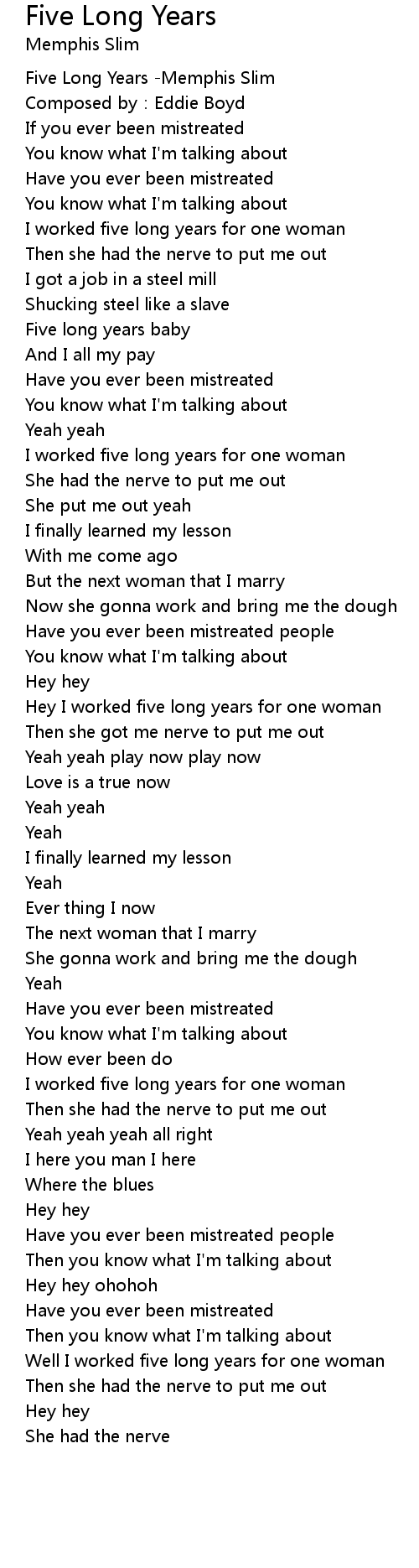 | 歌曲 | Five Long Years |