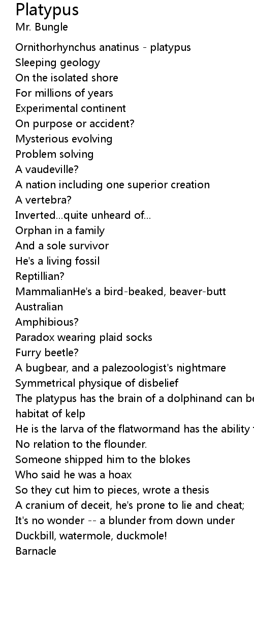 The platypus has the brain of a dolphinand can be seen driving a forklift in his habitat of kelp |