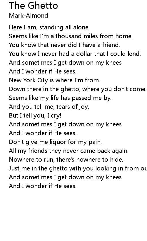 Just me in the ghetto with you looking in from outside. |