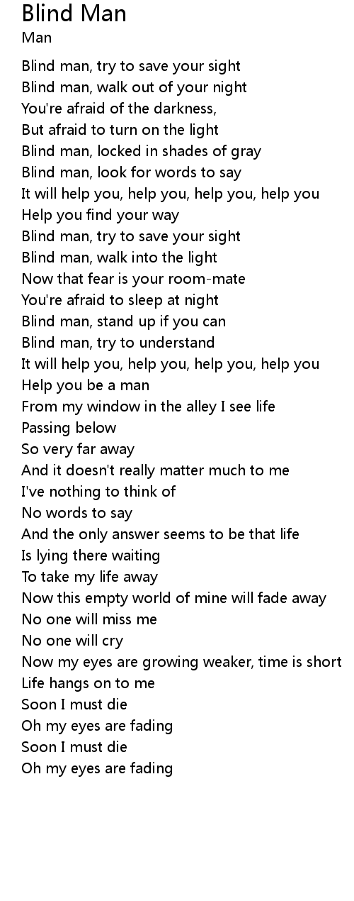 Blind man, look for words to say |