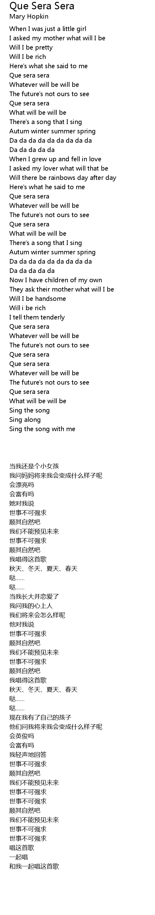 | [02:22.87] | Que sera sera |