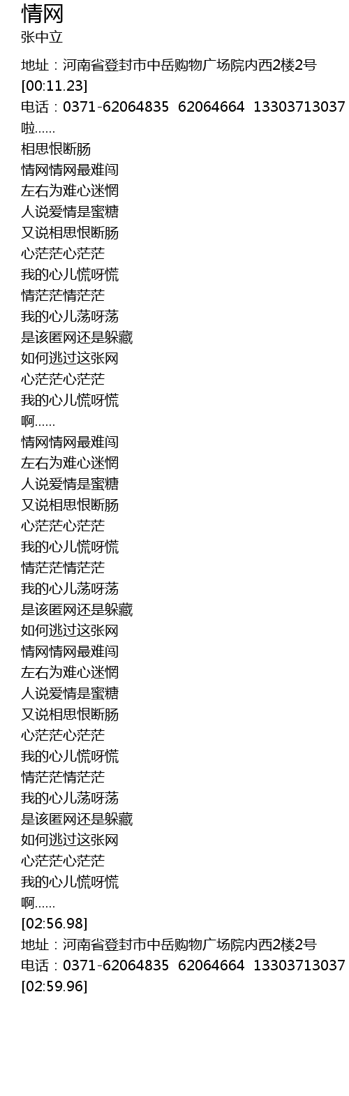 | [02:59.25] | dian hua: 037162064835 62064664 13303713037 |