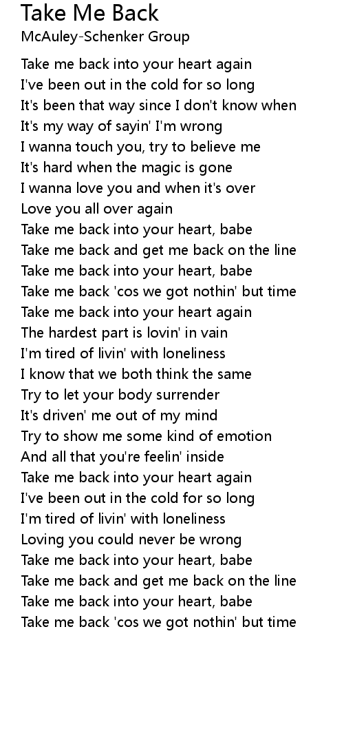 Take me back into your heart, babe