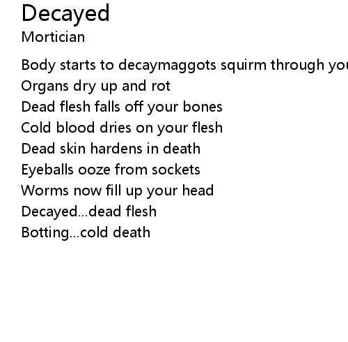 | Body starts to decaymaggots squirm through your flesh | |