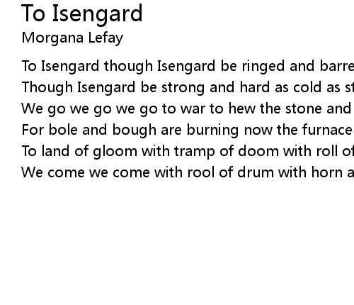 | To Isengard though Isengard be ringed and barred with doors of stone | |