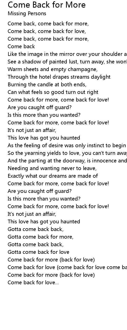 Come back for more (back for love) |
