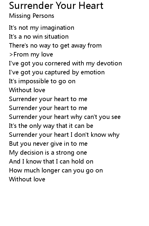 | Surrender your heart I don't know why | |