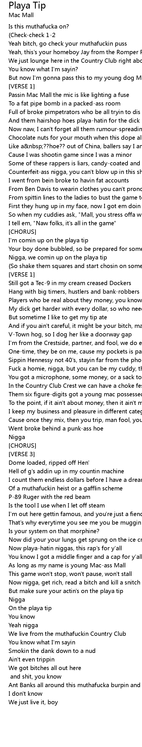 Nigga, we comin up on the playa tip |