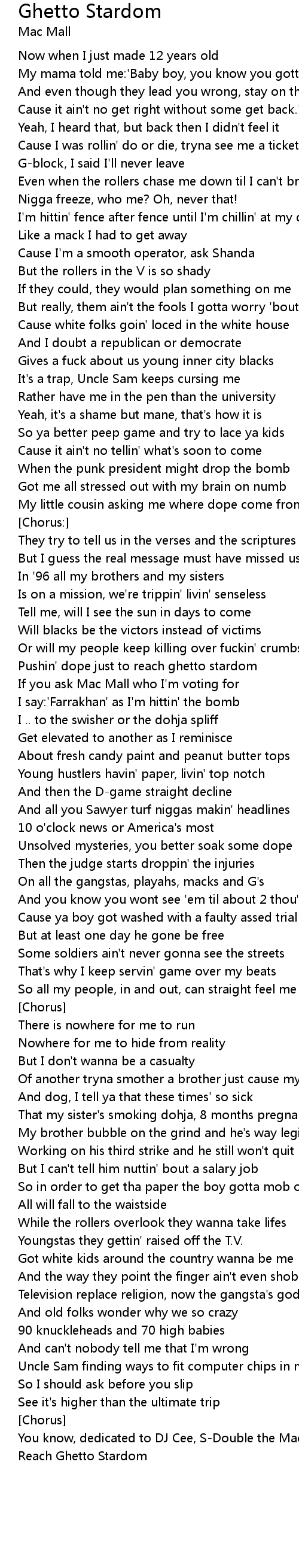 Ghetto Stardom 歌词