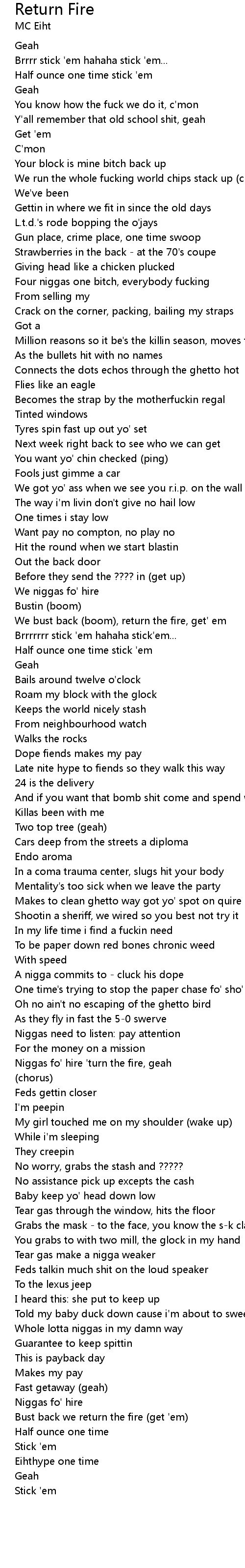 Niggas fo' hire 'turn the fire, geah