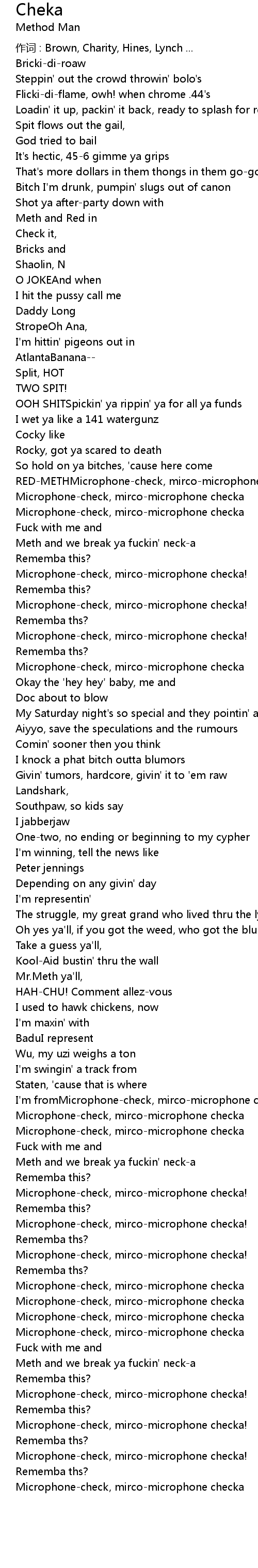 | Meth and we break ya fuckin' neck-a | |