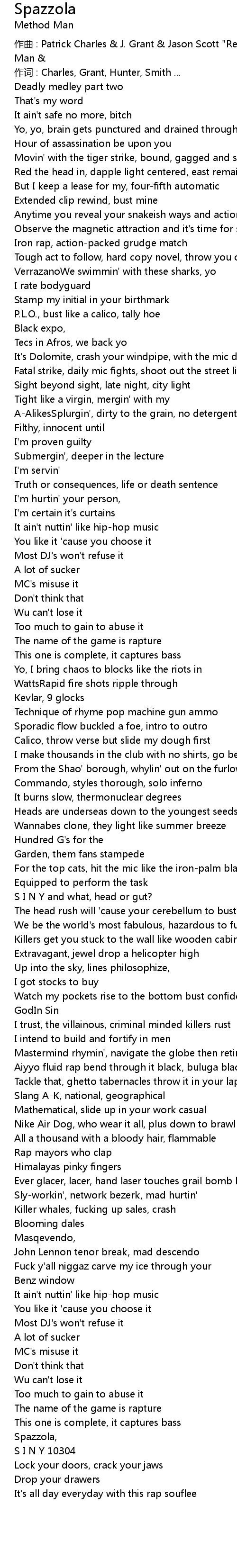 | 作曲 : Patrick Charles & J. Grant & Jason Scott "Rebel-INS." Hunter & Method Man & | |