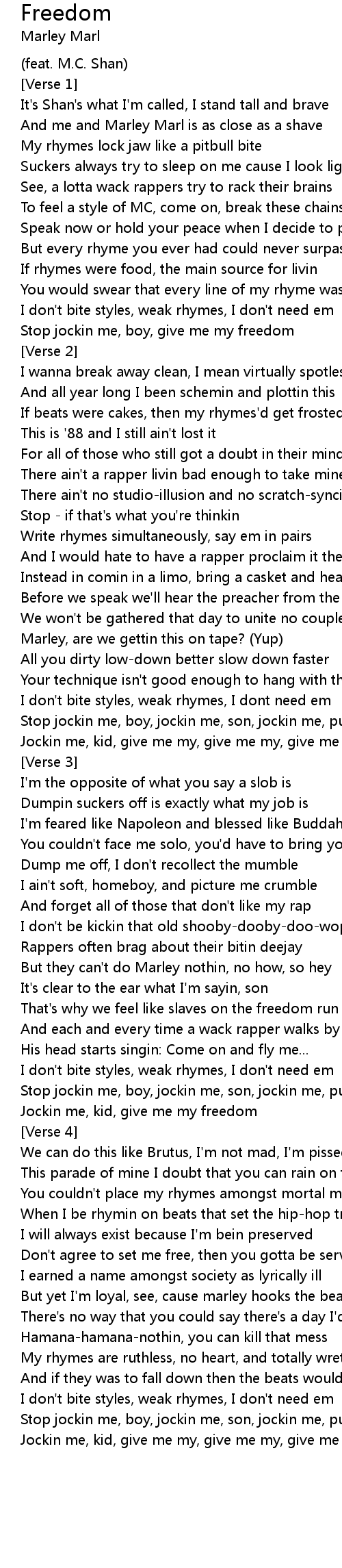 Jockin me, kid, give me my, give me my, give me my freedom |