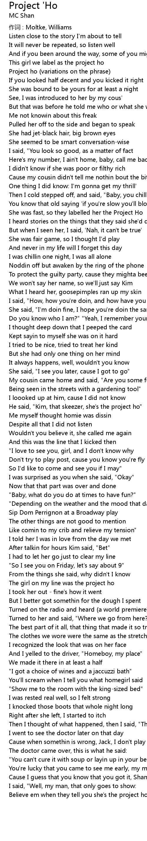 | He said, " Kim, that skeezer, she' s the project ho" | |