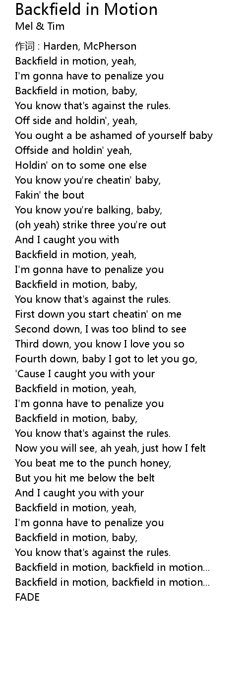 | 歌曲 | Backfield in Motion |