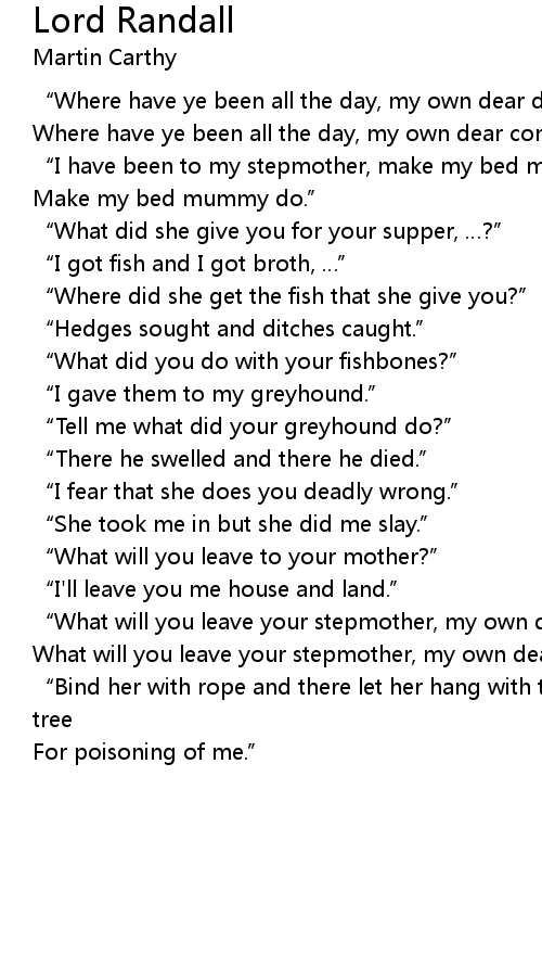 | What will you leave your stepmother, my own dear comfort and joy?" | |