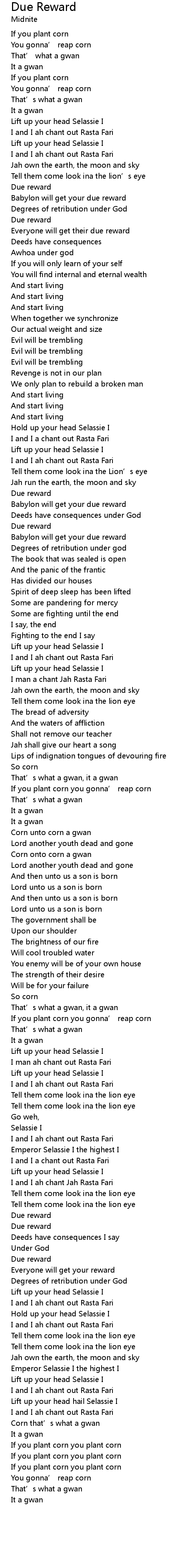 | I and I ah chant Jah Rasta Fari | |