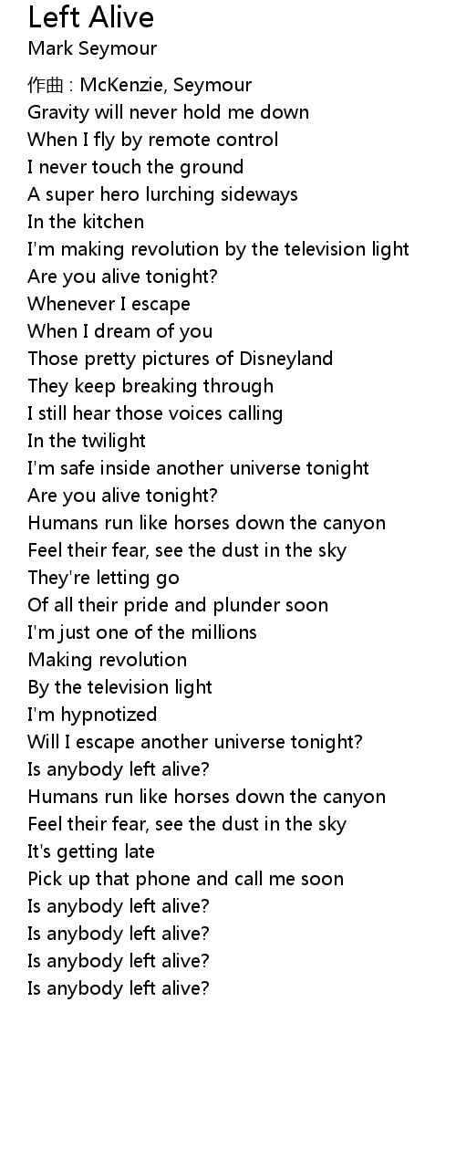 | 歌曲 | Left Alive |
