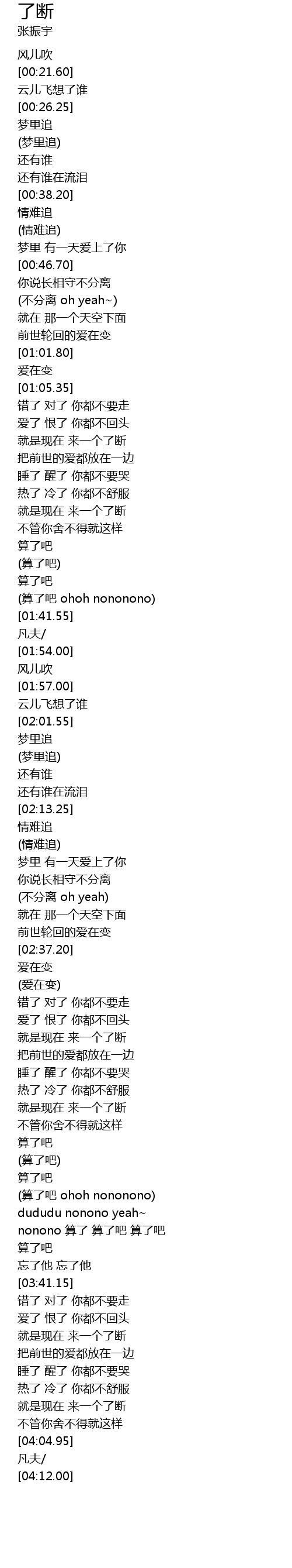 | [03:59.95] | jiù shì xiàn zài lái yí gè liǎo duàn |