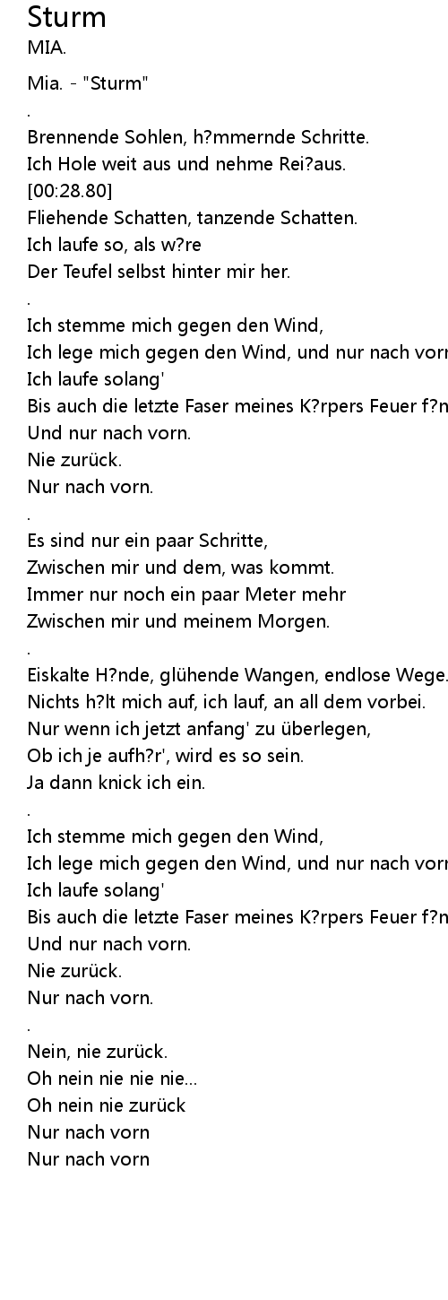 | [00:22.77] | Brennende Sohlen, h? mmernde Schritte. |