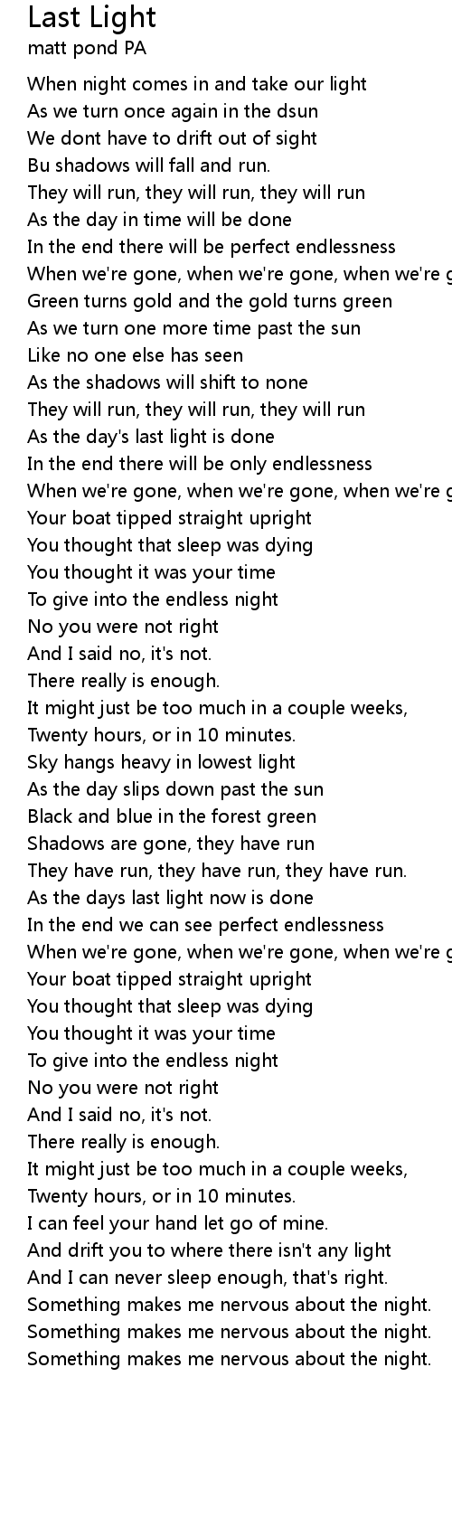 Last Light 歌词