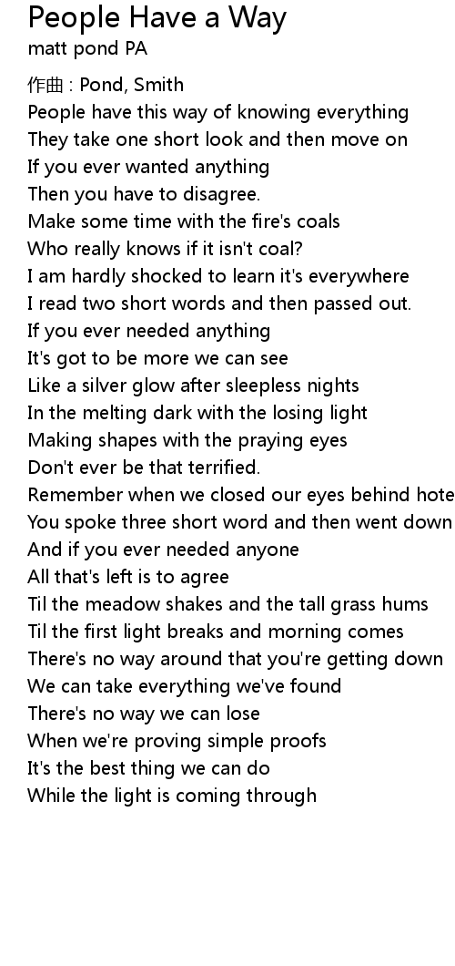 | 歌曲 | People Have a Way |