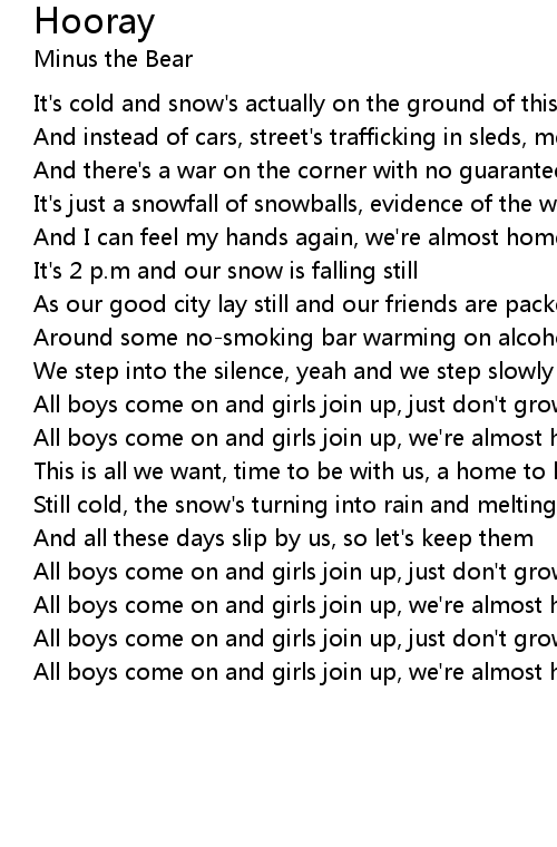 All boys come on and girls join up, we're almost home |