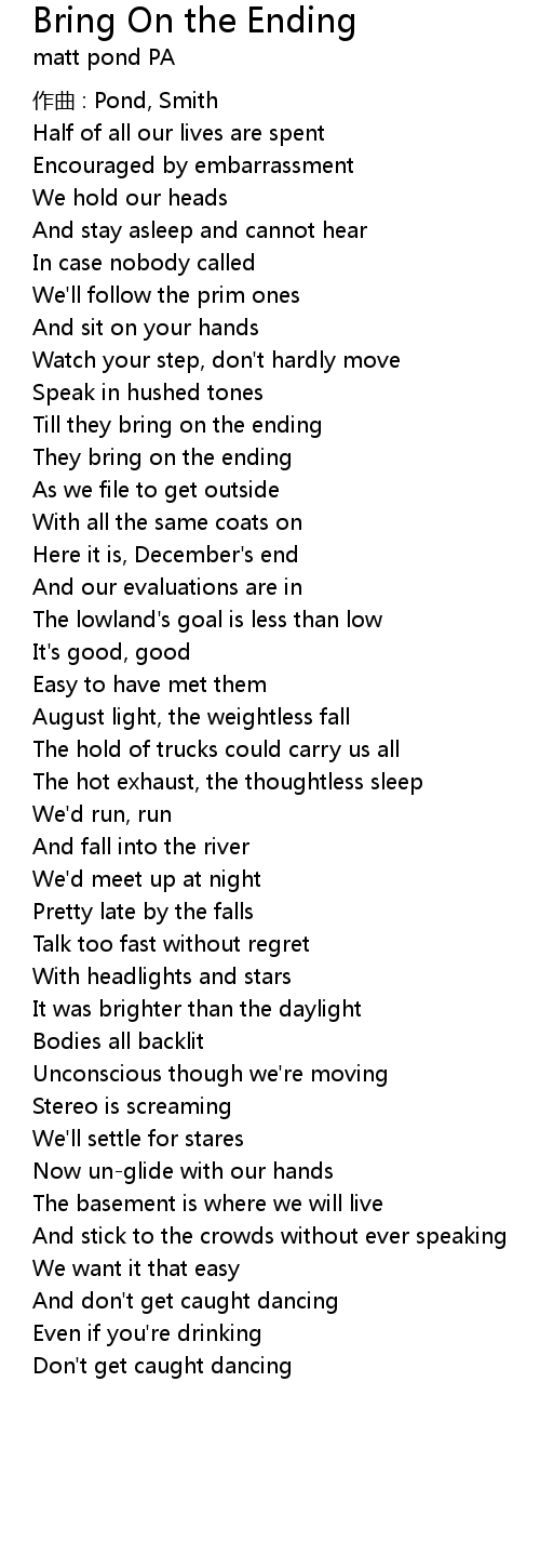 | 歌曲 | Bring On the Ending |