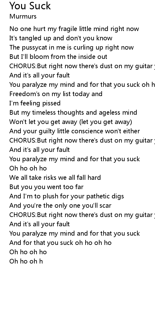 | You paralyze my mind and for that you suck oh ho oh ho | |