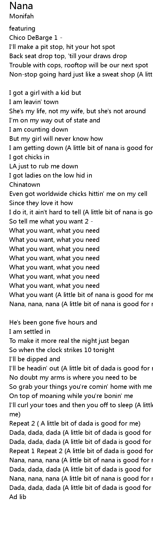| Nana, nana, nana (A little bit of nana is good for me) [Mo] | |