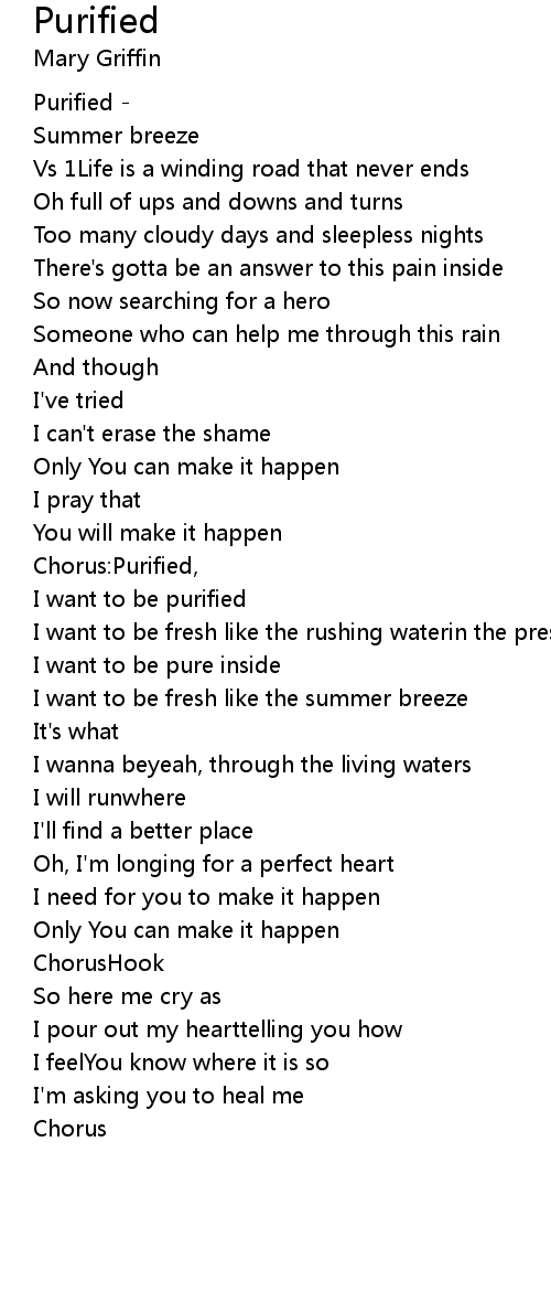 I want to be fresh like the rushing waterin the presence of the fatherpurified, |