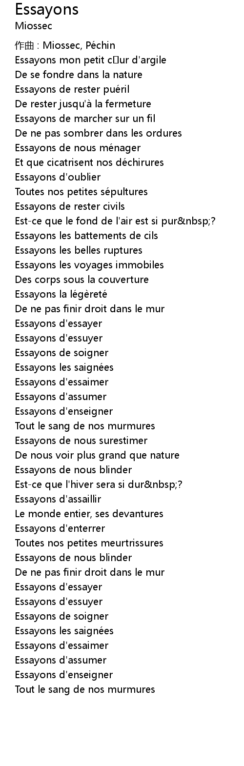 | 作曲 : Miossec, Péchin | |